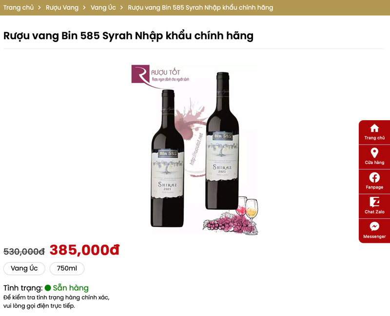 Rượu vang Bin 585 (giá thị trường 385.000đ)